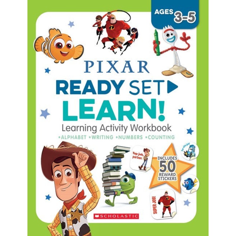 Join your favourite Disney-Pixar characters on a learning adventure. Develop your childs literacy and numeracy skills with these fun and educational activities. With tracing and maths problems, your child will love learning with their favourite characters from Toy Story, The Incredibles, Finding Nemo and Monsters, Inc.
