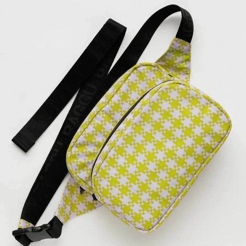 A hands-free bag for any outing. Surprisingly spacious and made from durable, heavyweight nylon for easy cleaning. Wear across your body, over your shoulder or around your waist.Two main compartmentsInterior zip pocketMeasures 6 8" 2"45.5" max strap length