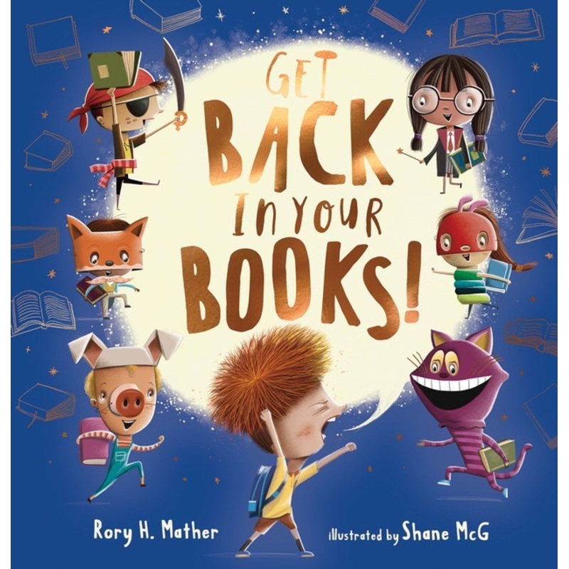 There were pirates in the paperbacks, a bear in fantasy. Then I saw a smiling cat, staring straight at me. Why are all these books characters on the loose? They need to get back in their books!