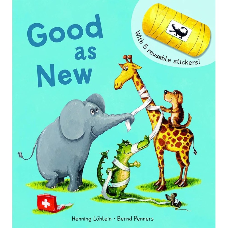 Giraffe hurt his neck and Elephant hit her knee … but a cast makes it better. Young readers will eagerly use the reusable stickers to help make the animal friends “feel better too.”