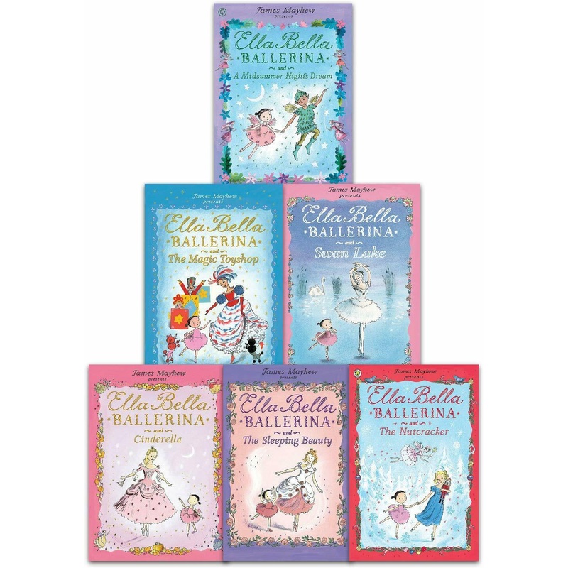 Ella Bella Ballerina and CinderellaCan the adorable Ella Bella Ballerina help Cinderella get to the Royal Ball?Alone on the stage after class, Ella Bella opens Madame Rosa’s magical musical box and is whisked off into the world of the Cinderella ballet. But will Ella Bella be able to help Cinderella meet her perfect Prince Charming?Ella Bella Ballerina and the Sleeping BeautyElla Bella longs to be a beautiful ballerina, and so each week she goes to Madame Rosa’s ballet class at the old theatre. As we all know, theatres are magical places where anything can happen, and sure enough, as soon as Ella Bella opens Madame Rosa’s magical musical box on the empty stage, she’s whisked off in a beautiful lilac light to Sleeping Beauty’s palace. But will she be able to help the Lilac Fairy save Sleeping Beauty from the bad fairy’s wicked spell?Ella Bella Ballerina and Swan LakeCan Ella Bella help the swan princess to be reunited with her prince? Will she help to break the wicked sorcerer’s spell? Will true love conquer all?Young ballerinas will find the answer to all these questions and delight in the sheer charm of Ella Bella’s world. James Mayhew has also included a last page full of ballet facts to help even the keenest budding ballerina learn about the story behind Swan Lake.Ella Bella Ballerina and the Nutcrackercan Ella Bella help the Nutcracker to defeat his arch enemy, the wicked Mouse King? Join Ella Bella Ballerina as she twirls into the enchanting world of The Nutcracker ballet with its magical dancing snowflakes, tantalising swirling sweets and, of course, the beautiful Sugar Plum Fairy.James Mayhew’s richly detailed storytelling and his exquisite, retro art-style make this book perfect for all would-be prima ballerinas. The final page is devoted to ballet facts, so children can learn about the original ballet The Nutcracker.Ella Bella Ballerina and A Midsummer Night’s DreamEveryone’s favourite little dancer, Ella Bella Ballerina, steps out of fairytales and into the world of Shakespeare as she goes on a magical adventure in Fairyland, with Puck, King Oberon and Queen Titania. Who will the queen fall in love with when under the king’s spell? And what will become of the hapless actor Bottom, transformed into a donkey?Beautifully illustrated and perfectly pitched for a young audience and all would-be prima ballerinas, and a wonderful very first introduction to the stories of the ballet and Shakespeare. From James Mayhew, the creator of the Katie series of books – featuring the hugely engaging Katie and making art an adventure for every child.Ella Bella Ballerina and TheMagic ToyshopDiscover a world of fairytale toymakers and dancing dolls in in this beautiful introduction to classic ballet,La Boutique Fantastique.With a sparkling foiled cover and exquisitely detailed illustrations, this is the perfect gift for all would-be ballerinas.