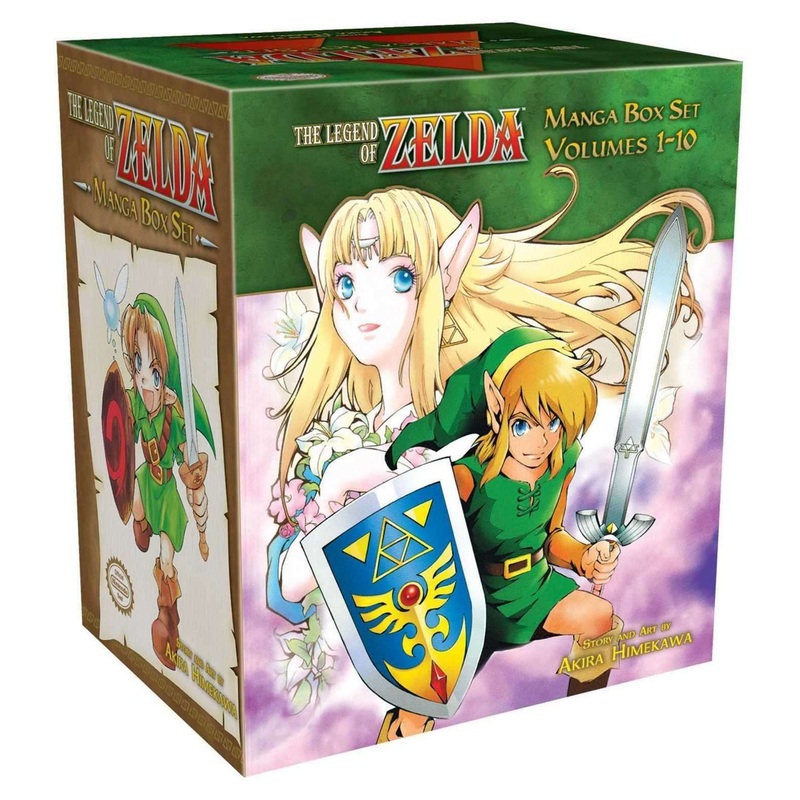 DescriptionIn the mystical land of Hyrule, three spiritual stones hold the key to the Triforce, and whoever holds them will control the world. A boy named Link sets out on a quest to deliver the Emerald, the spiritual stone of the forest, to Zelda, Princess of the land of Hyrule. The journey will be long and perilous, and Link will need all his skill and courage to defeat evil. The battle for Hyrule and the Sacred Realm has begun!Contains all 10 volumes of The Legend of Zelda manga series and a collectible poster.