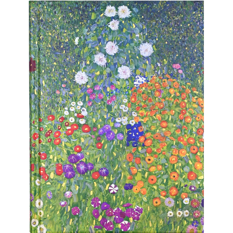 Vibrant journal reproduces Gustav Klimt’s gorgeous Cottage Garden , painted in 1907, during the golden period of the artist’s career. Cover design is enhanced with intricate embossing and hand-selected touches of shimmering gold foil. Inside, 160 inviting pages await pen or pencil, whether for personal reflection, sketching, or recording favorite quotations or poems. Premium 120 gsm paper is acid-free and of archival quality. Light gray lines gently guide your writing. A matching satin ribbon bookmark keeps your place. Gilded-gold edging catches the light as you turn each page. Complementary spine decorations and interior endsheets enhance the overall design, offering a harmonious presentation. Bookbound-style hardcover binding ensures durability. Journal measures 6-1/4” wide x 8-1/2” high. An elegant keepsake in which your musings and creativity will find their home.