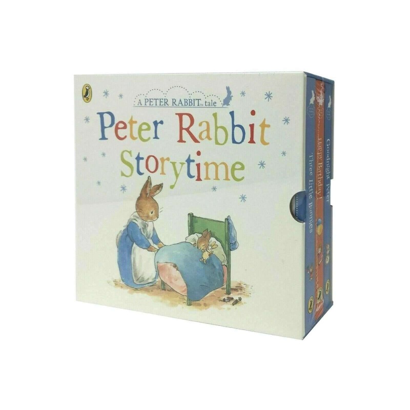 Titles in this set:Goodnight PeterHappy Birthday!Three Little Bunnies Description Three Little Bunnies Peter Rabbit is used to being an only bunny, so he gets quite a surprise when not one, not two, but three baby rabbits join the family! Peter is not at a