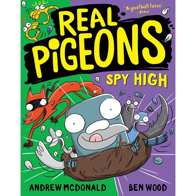 THE REAL PIGEONS SOLVE HIGH CRIMES BY FLYING AND SPYING EVERYWHERE! They zoom around in their NEST PLANE and wear CLOUDY disguises as they investigate weird mysteries. Like why are BIRDS FALLING out of the sky? Who KIT-NAPPED a notorious kitten called Clawzy? And why is a pack of LOCUSTS attacking them?