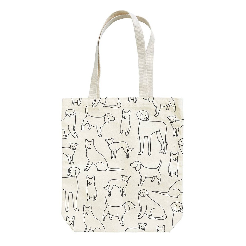 Minimum 2 totes per style. Suggested retail: $26.95 per toteBook bag size, 13.5″ W x 14.5″ H x 3.25 D. Gusseted for extra capacityMade of strong cotton canvasThe dog lover in your pack will love this allover pattern screen printed in black on our natural canvas tote.Keywords: canvas, tote, bag, book bag, dog, graphic, line, dogs, cute, canine