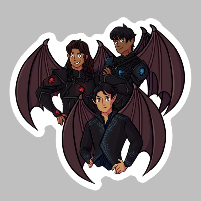 An adorable sticker of Rhys, Cassian, and Azriel - known lovingly as the "Bat Boys" - in their Illyrian warrior garb! *Sticker Details* - 3x2.9 in. sticker - Vinyl printed stickers - fast and easy bubble-free application - Waterproof & Weatherproof - dishw